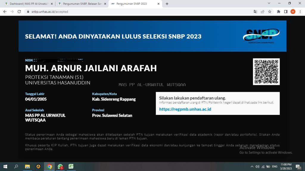 Sidrap – Hasil dari Seleksi Nasional Berbasis Prestasi (SNBP) telah diumumkan pada Selasa, 28 Maret 2023. Total, ada 17 orang santri Madrasah Aliyah (MAS) Pondok Pesantren Al Urwatul Wutsqaa (PPUW) yang dinyatakan lolos pada sejumlah perguruan tinggi negeri.